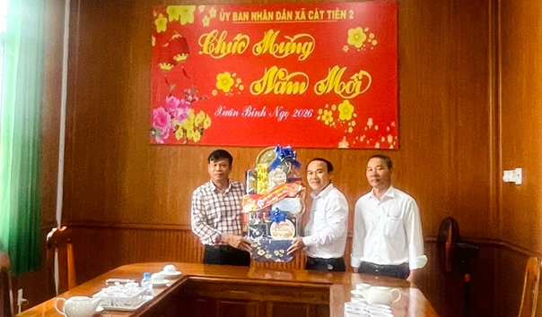 Nhân dịp Tết Nguyên đán Bính Ngọ 2026, nhiều cơ quan, đơn vị và các tổ chức tôn giáo đã đến thăm, chúc Tết tại xã Cát Tiên 2. Tiếp các đoàn có đồng chí Nguyễn Hoàng Lịch - Phó Bí thư Đảng uỷ, Chủ tịch UBND xã; đồng chí Đỗ Thanh Vũ - Phó Chủ tịch UBND xã; đồng chí Trần Quốc Doanh - Phó Chủ tịch UBND xã; lãnh đạo Văn phòng HĐND - UBND xã.