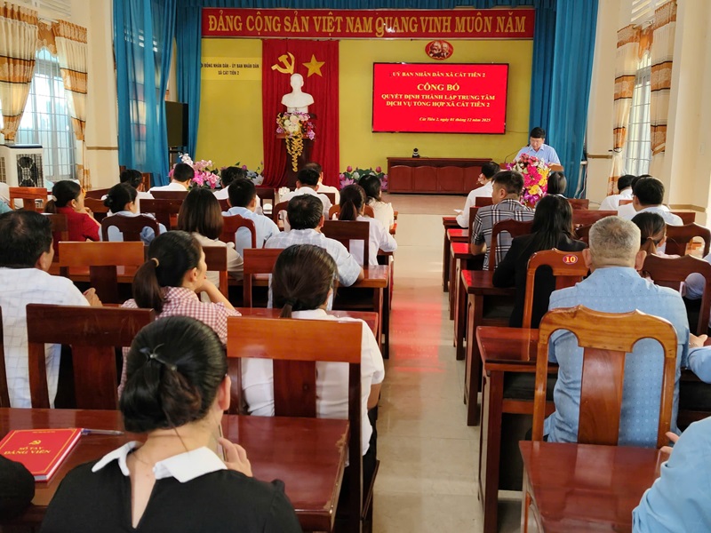 Sáng ngày 01/12/2025, UBND xã Cát Tiên 2 tổ chức Lễ công bố Quyết định thành lập Trung tâm Dịch vụ tổng hợp xã Cát Tiên 2 và ra mắt bộ máy làm việc.