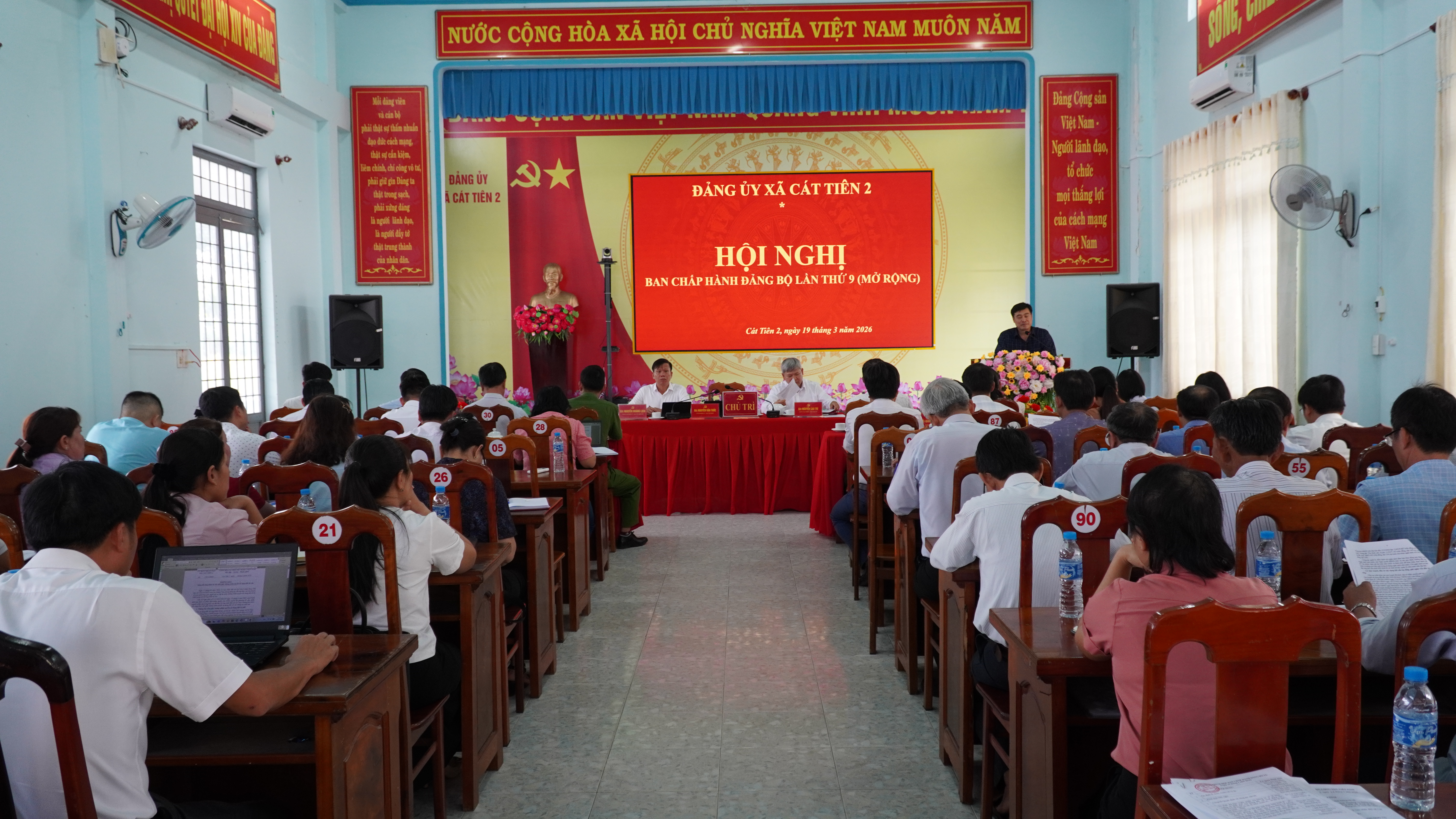 Chiều ngày 19/3/2026, Đảng ủy xã Cát Tiên 2 tổ chức Hội nghị đánh giá tình hình thực hiện nhiệm vụ phát triển kinh tế - xã hội, quốc phòng - an ninh; công tác xây dựng Đảng, xây dựng hệ thống chính trị 3 tháng đầu năm 2026 và đề ra phương hướng, nhiệm vụ 9 tháng cuối năm 2026.