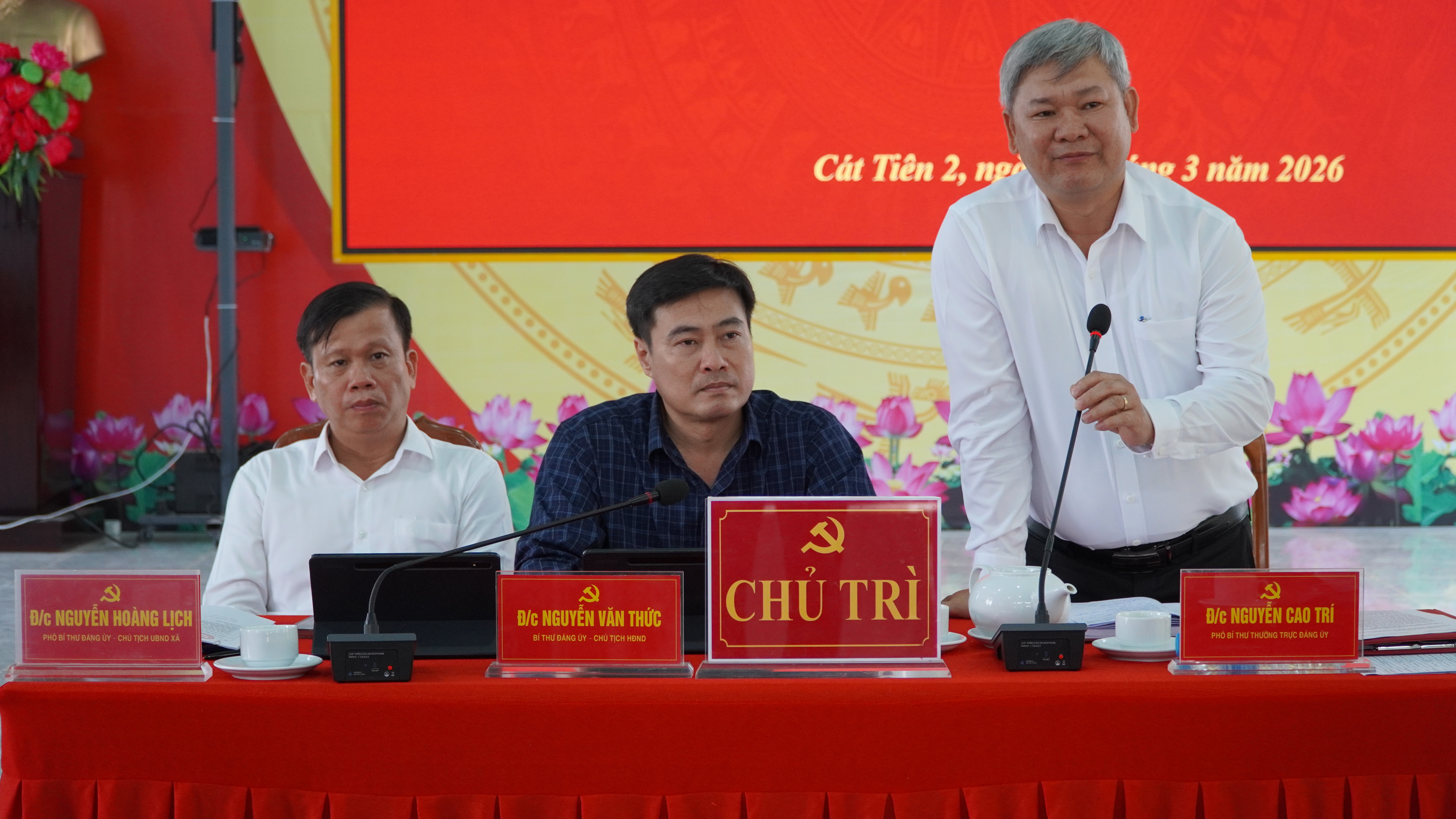 Hội nghị do đồng chí Nguyễn Văn Thức - Bí thư Đảng ủy, Chủ tịch HĐND xã chủ trì; cùng chủ trì có đồng chí Nguyễn Cao Trí - Phó Bí thư Thường trực Đảng ủy; đồng chí Nguyễn Hoàng Lịch - Phó Bí thư Đảng ủy, Chủ tịch UBND xã. Tham dự hội nghị có các đồng chí trong Thường trực HĐND, UBND, Ủy ban MTTQ Việt Nam xã và các tổ chức chính trị - xã hội; các đồng chí Ủy viên Ban Chấp hành Đảng bộ xã; lãnh đạo các cơ quan, đơn vị trên địa bàn; bí thư các chi bộ trực thuộc Đảng ủy xã.